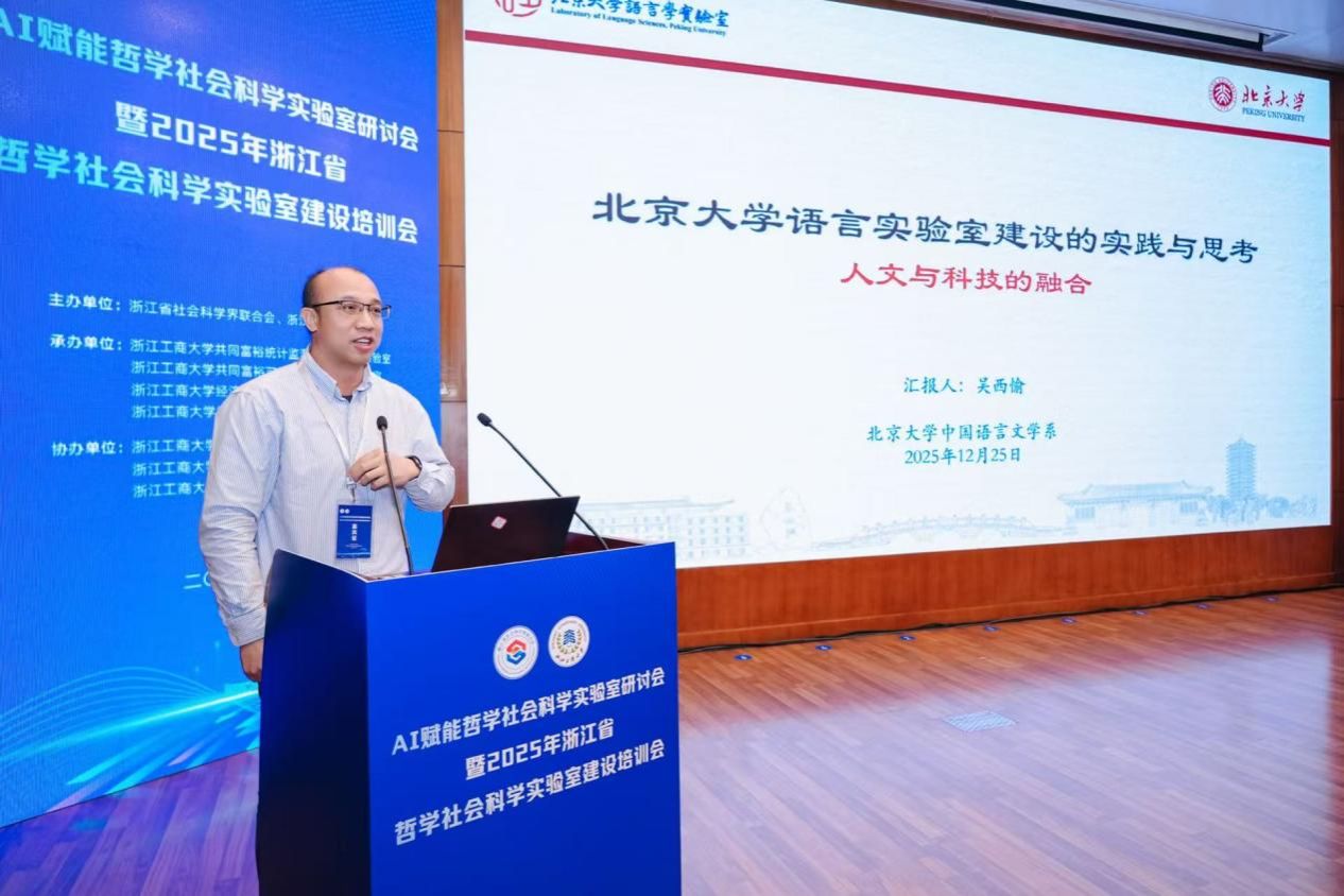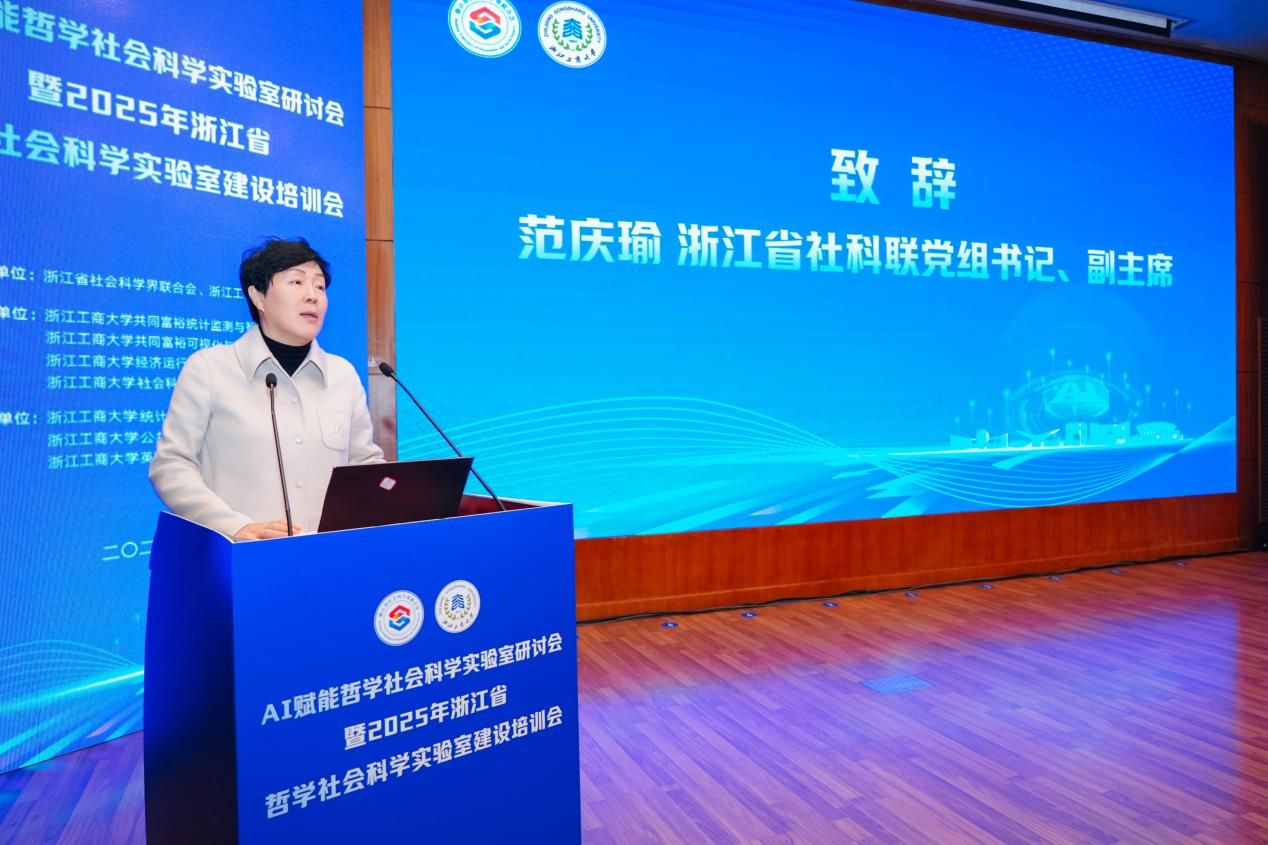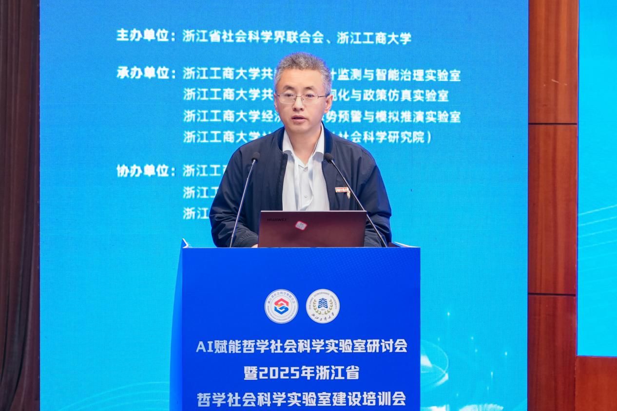 12月25日,由浙江省社会科学界联合会主办的AI赋能哲学社会科学实验室研讨会暨2025年浙江省哲学社会科学实验室建设培训会在浙江工商大学隆重举行。来自全省学界、业界及相关管理部门的领导、国内知名专家学者齐聚一堂,共商浙江省哲学社会科学实验室建设路径级创新发展蓝图。我校校长韦路、副校长李文冰等校领导,人文社科与创作处处长黄寒冰、副处长陈怡,出版学院院长、重点实验室方向负责人崔波等部门负责人出席会议,实验室骨干研究员余波副教授列席参会。